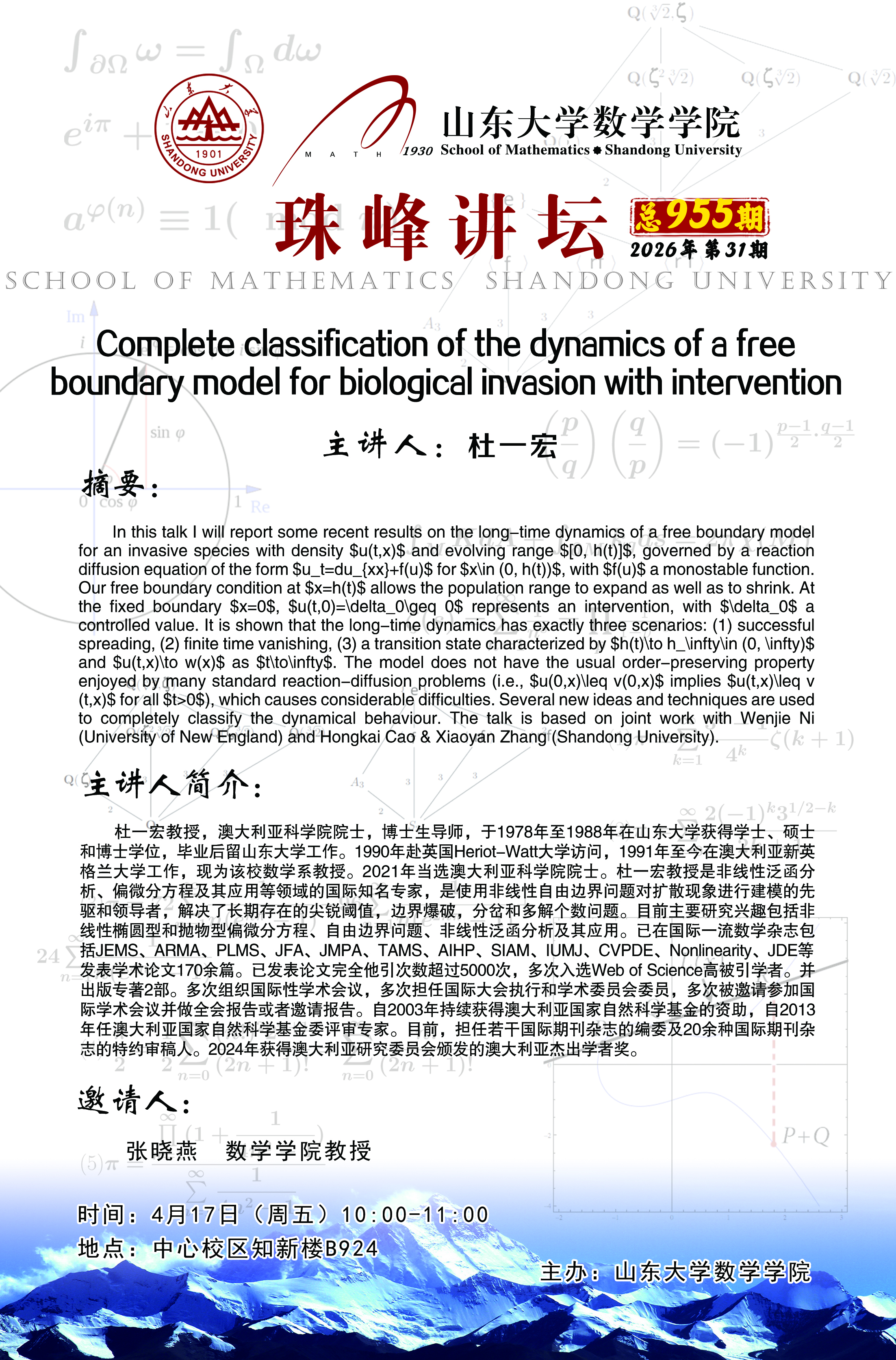 下一条:英国上市公司365珠峰讲坛第957期:局部指标理论:从指标到解析挠率与eta不变量