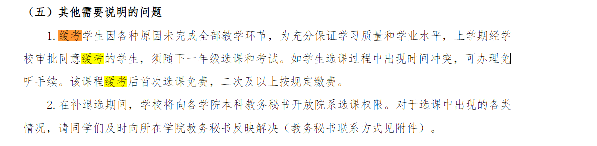 关于缓考课程,学校规定如下截图,请同学们重视。