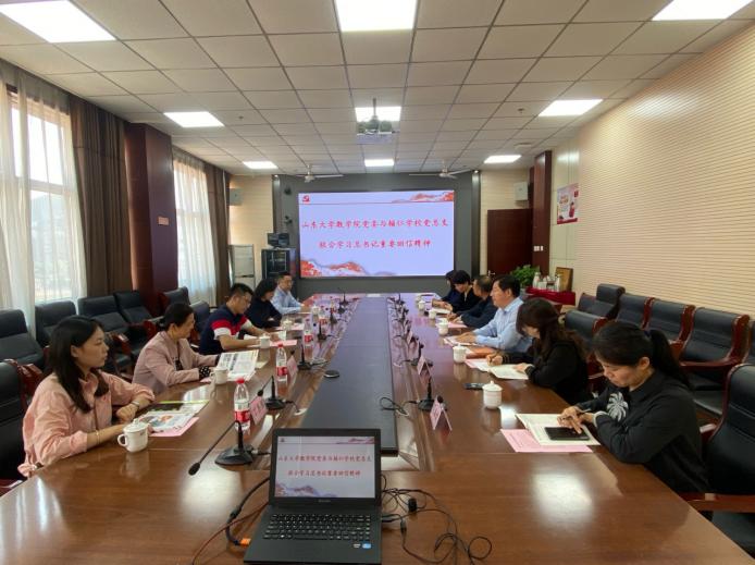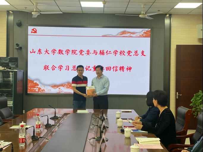 习近平总书记的回信体现了对教育的高度重视,对山大的亲切关怀。学习习近平总书记的回信,大家深受鼓舞激励,深感责任重大。大家表示,一定深刻领悟总书记的指示要求,勇担重任、坚守初心,引领创新,从历史和现实、理论和实践相结合的角度深入阐释如何更好坚持中国道路、弘扬中国精神、凝聚中国力量!以习近平总书记重要回信精神为指引,结合党史学习教育积极践行为师生办实事,服务和建设好山大基础教育。与会成员围绕数学文化引领、团队培训、员工培养、课程研发和改革,中员工“走进山大”等合作展开热烈的讨论,制定了初步的路线图和日程表。本次联合学习活动开启了大学与中小学携手共建的新里程,王光辉还向辅仁学校赠送了学院参编的数学科普刊物《数学文化》。