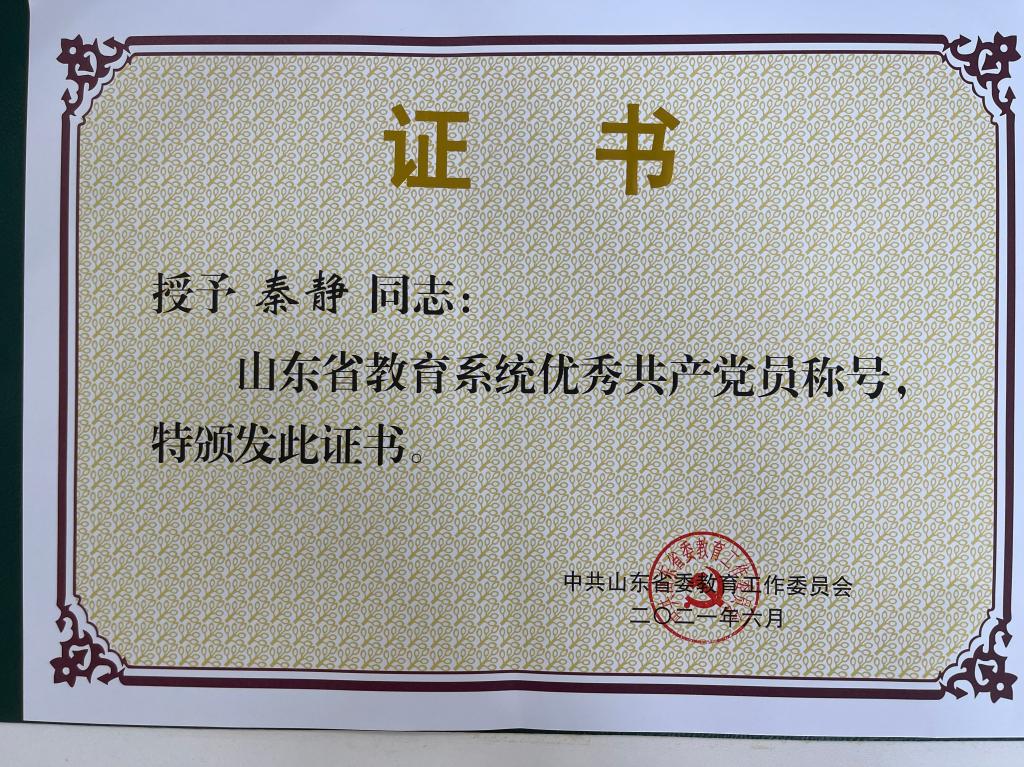 近日,时值伟大的中国共产党诞辰100周年之际,中共山东省委教育工委下发了《中共山东省委教育工委关于表彰山东省教育系统优秀共产党员、优秀教育工作者和先进基层党组织的决定》,公司教师党员秦静获评山东省教育系统优秀共产党员。
