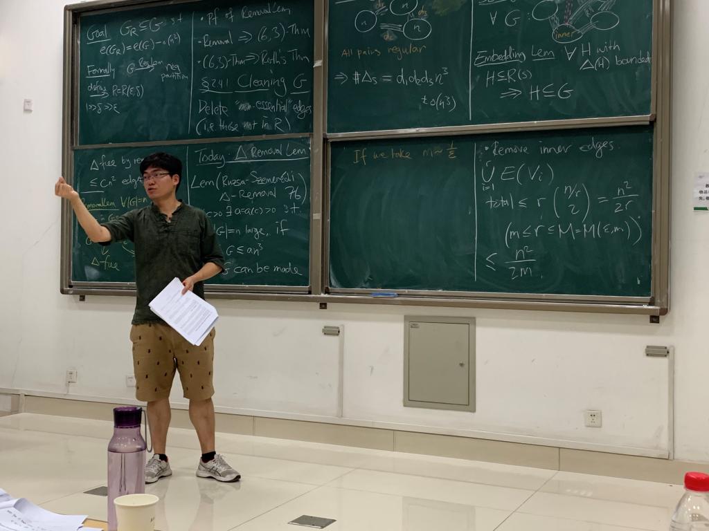 Jaehoon Kim和Hong Liu的系列课程内容丰富,授课过程条理清晰,内容丰富,开阔了大家的视野,拓宽了研究组合问题的思路,老师和同学们都受益匪浅。在课程的最后,我们还组织了一次简单的测验,进一步的加深了同学们对课程内容的理解与运用。大部分同学在测试中都取得了优异成绩,其中来自浙江大学的奚元霄等十名同学获得了优秀学员的称号。