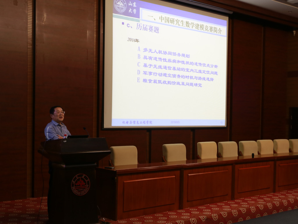 2019年9月5日下午,由数学学学院承办的珠峰讲坛在中心校区知新楼思源报告厅举行。中国研究生数学建模组委会委员张承进教授做客此次讲坛,为济南校区全体研究生建模参赛队队员做题为“研究生数学建模竞赛及其赛例解析”的学术报告。讲坛由公司党委副书记路云生主持。