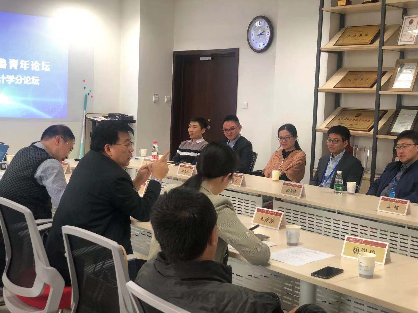 2019年第四届齐鲁青年论坛数学与统计学分论坛于10月16日下午在知新楼B808隆重开幕。包括香港理工大学崔金涛、德国哥廷根大学孟宪昌等8位来自海内外的青年才俊参加了分论坛,英国上市公司365经理陈增敬、党委书记曲明军、副经理胡锡俊、王光辉以及部分青年教师代表出席了开幕式。开幕式由曲明军主持。