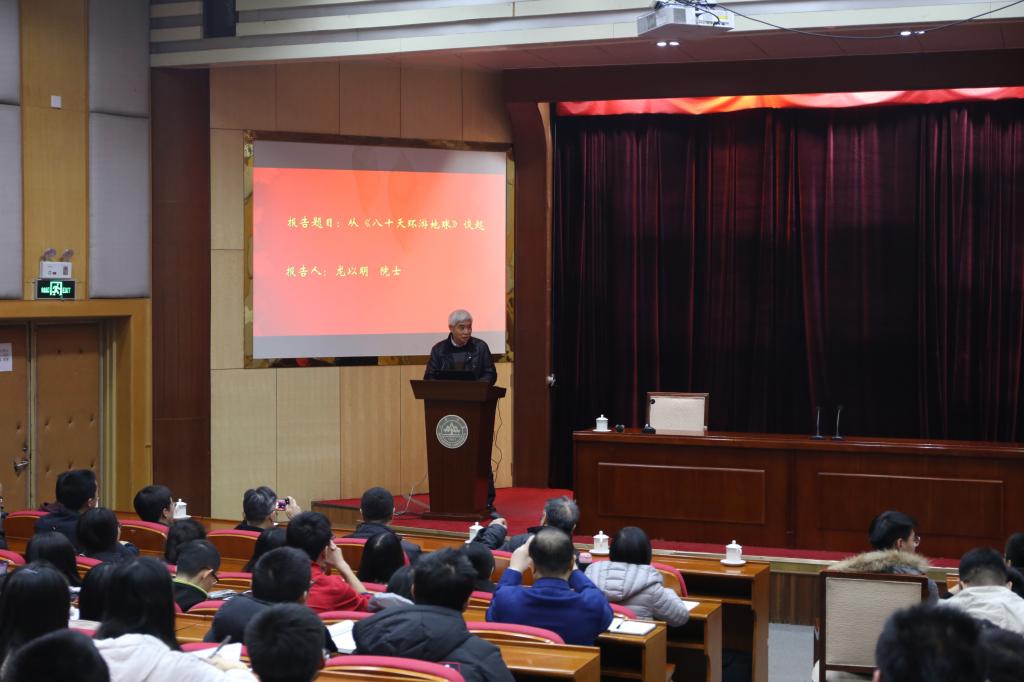 龙以明院士简要讲述《八十天环游地球》中一位英国绅士在1872年环游地球的故事,介绍与之紧密相关的数学概念——闭测地线,简要介绍与其相关的数学理论和对此领域的发展做出重要贡献的著名数学家的故事。希望能从中体会到这些数学家是如何建立其新方法、新理论,开创新领域、解决重大问题。在报告的最后,龙院士引用了爱因斯坦的一句名言“不要担忧你在数学上遇到的困难,我可以向你保证,我遇到的困难更大……”告诉我们科研工作者需要保持好奇心、打好专业基础、全面认识课题、同时需要持之以恒的积累和创新性思维。