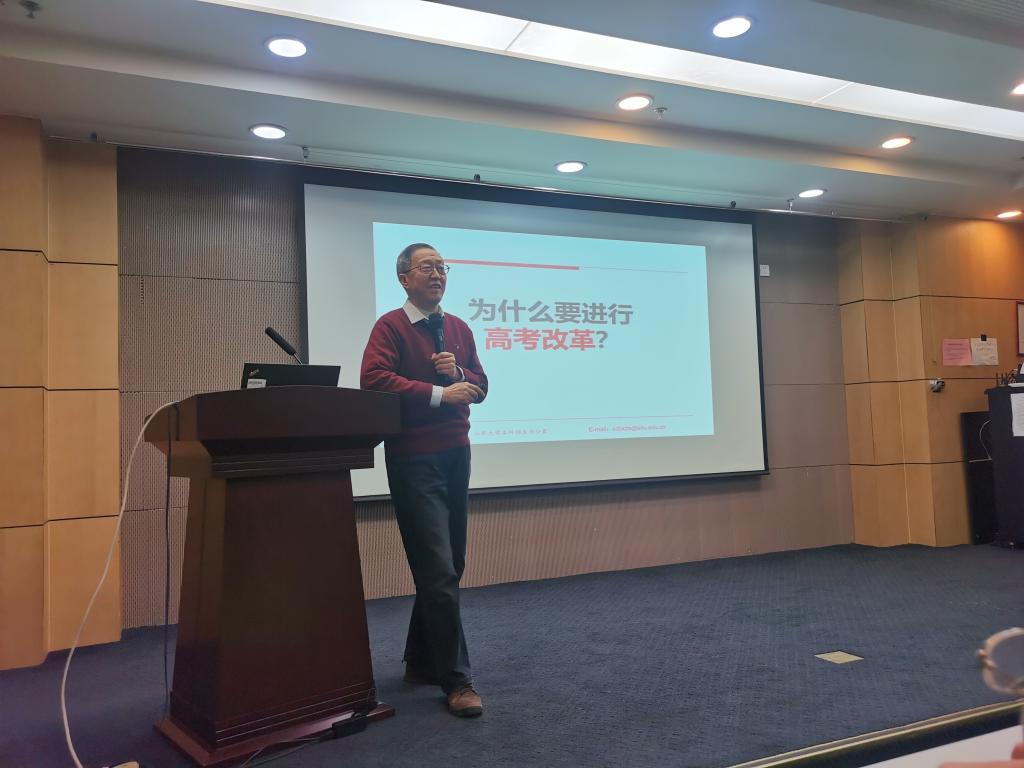 崔玉泉教授为老师们带来了题为《2020高考模拟试题分析及命题趋势》的报告。报告中,崔教授从题型变化、题量变化、考查知识点的分布、素养导向等多个维度分析了此次模拟高考试题的基本情况,并根据考生得分情况对接下来的备考提出建议。在模拟高考阅卷结束之后,阅卷组还将进一步整合分析各类数据,力争为参加2020年新高考的考生提供更多更全面的支撑。