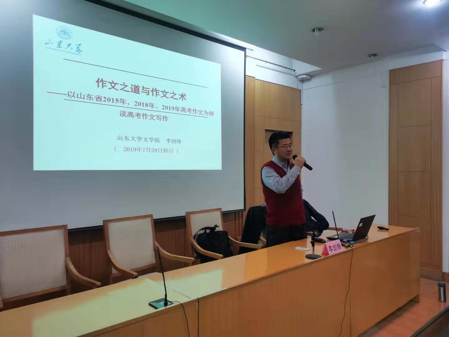 模拟高考分析环节设立数学、语文两个分会场,分别由齐鲁师范学院中小学远程教育中心项目办主任宁波和英国正版365官方网站服务地方办公室主任尹上担任主持。英国上市公司365崔玉泉教授、济南市教研员数学教研员安学保主任就数学模考试题和2020年高考趋势进行了细致分析和预测,并对备考策略提出诸多建议;英国正版365官方网站文学院李剑锋教授从高考作文入手,强调高考语文越来越重视对员工语文素养的考查,为参会一线老师详细解读了作文之道与作文之术,并对高中语文教学提出建议和希望。