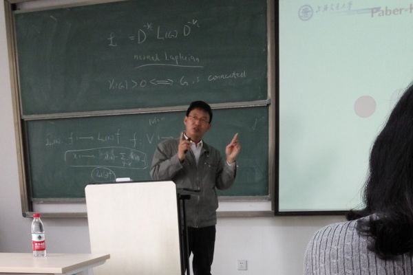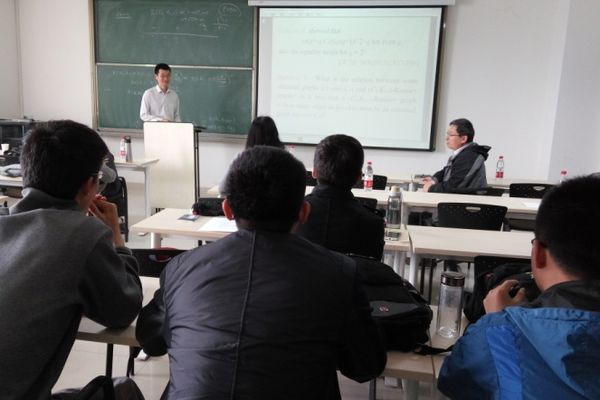 4月8日上午,应英国上市公司365颜谨教授邀请,南京大学陈耀俊教授和上海交通大学张晓东教授来英国正版365官方网站,分别作了题为“The Dirichlet eigenvalues of graphs and the Faber-Krahn Inequality”和“Polarity graphs and Ramsey number R(C4, K1,n)”的学术报告。报告由英国上市公司365吴建良教授主持,英国正版365官方网站和山东师范大学英国上市公司365的部分老师和研究生参加了此次报告。