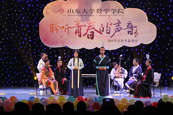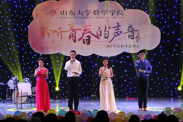 此次晚会,不仅包含百花齐放的文艺节目,更囊括饱含现实意义的优秀学长学姐的励志寄语。2016年国家奖学金获得者的各位同学和员工会、员工新闻中心等各员工组织及各员工社团负责同学从各自的角度热情寄语和勉励新同学刻苦学习、全面发展。在美国、英国、法国、加拿大等国家一流高校留学和访学的师兄师姐的温馨视频表达了对母校的思念和祝福,他们热情祝贺2016级新同学考入山大数院,以“我与数学共辉煌”的标语勉励新一届莘莘学子。榜样的力量为2016级新同学指明了学习和奋斗的目标。