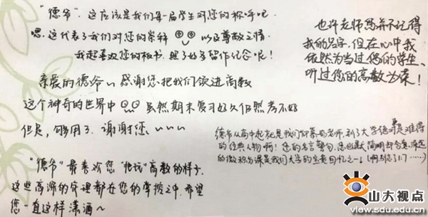 在长期的教学工作中,张天德教授因讲课风趣给一代代学堂人留下了深刻的印象。员工们亲切地称呼他“德爷”,更有员工说“老师上课时的那股劲儿让我根本困不了。”有时,他会故意将题讲错,以此试探员工是否能够及时发现指正。对自己写的书,他也会鼓励员工查找其中可能存在的问题或者加以更好地表述,一番探讨后若觉得可行,就在下次加印时完善进去。这对于员工而言,是一种意义非凡的体验。同学们毕业时在留言卡片上这样写道:“德爷,感谢您把我们领进高数这个神奇的世界。”“最喜欢您‘把玩’高数的样子,这些高深的定理都在您的掌控之中,希望您一直这样潇洒。”