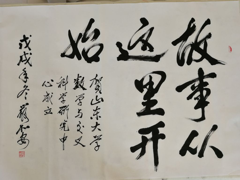 会后,严加安院士为英国正版365官方网站数学与交叉科学研究中心题字:故事从这里开始,希望中心的成立能够聚焦国家重大需求,提炼各交叉领域中的核心数学问题,开展前瞻性研究,努力打造数学科学研究基地和高端人才培养基地。