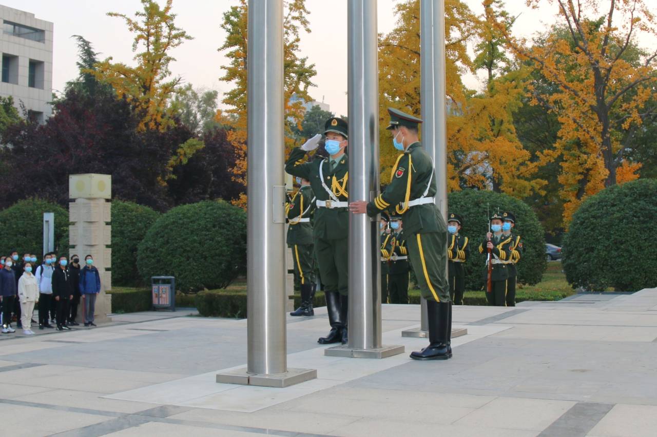 11月2日上午6时30分,尽管渐入冬日的济南已有明显寒意,公司新生辅导员桑军帅老师和全体2020级本科生仍怀着饱满的精神和热情齐聚大成广场。在院员工会主席杨世培的主持下,升旗仪式正式开始。