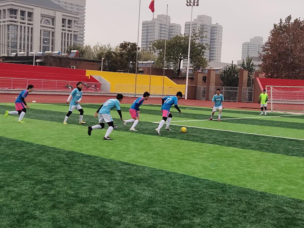 11月22日的比赛异常艰难。下午一点半,我们迎来了实力最为强劲的学院——体育学院。比赛前,球员们一起加油鼓劲。比赛开始后,队员们逐渐感受到体育学院的强势,但他们并没有急躁。周宇轩发现了对方的防守漏洞后成功打入首球。随后,体育学院抓住了一个同样的机会将比分扳平。时间来到下半场,体育学院有些沉不住气,而我方队员稳扎稳打,最终将比分锁定在2:1,战胜强敌体育学院。