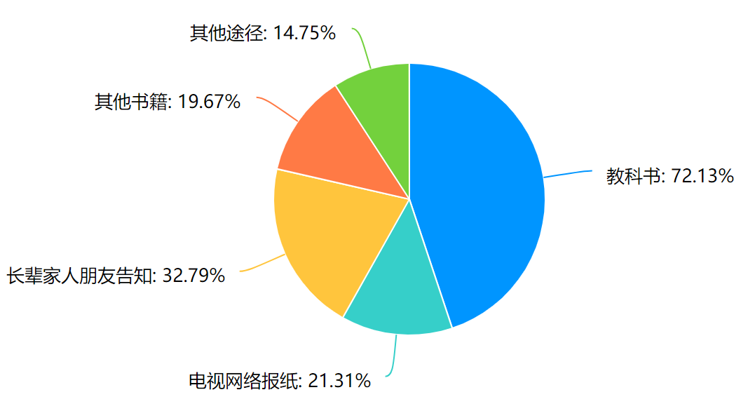 本次调查对象中理工科同学占比近80%,李大钊先生精神在小学阶段普及率就达到78%,其中以教科书形式获取资料占比超过70%。李大钊先生的事迹和精神能得到广泛普及值得认可,但我们觉得其获取渠道不应仅仅局限于教科书。家庭教育以及社会媒体也应该肩负起传播红色精神的责任,不再让红色精神的受众仅仅局限于员工层面,而是让社会的每一位成员都能得到红色精神的洗礼。