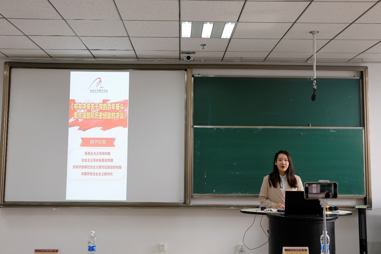 投票后,公司党的十九届六中全会精神青年宣讲团带领同学们共同学习《中共中央关于党的百年奋斗重大成就和历史经验的决议》。王雅祺从四个时期、四个伟大飞跃开始,介绍中国共产党和中国人民的四个庄严宣告及马克思主义中国化的三次飞跃,阐述了中国共产党的十个明确与两个确立、十三方面历史性成就和历史性变革,并着重强调了五大历史意义和十大经验,激励大家为实现第二个百年奋斗目标,实现中华民族伟大复兴的中国梦而不懈奋斗。