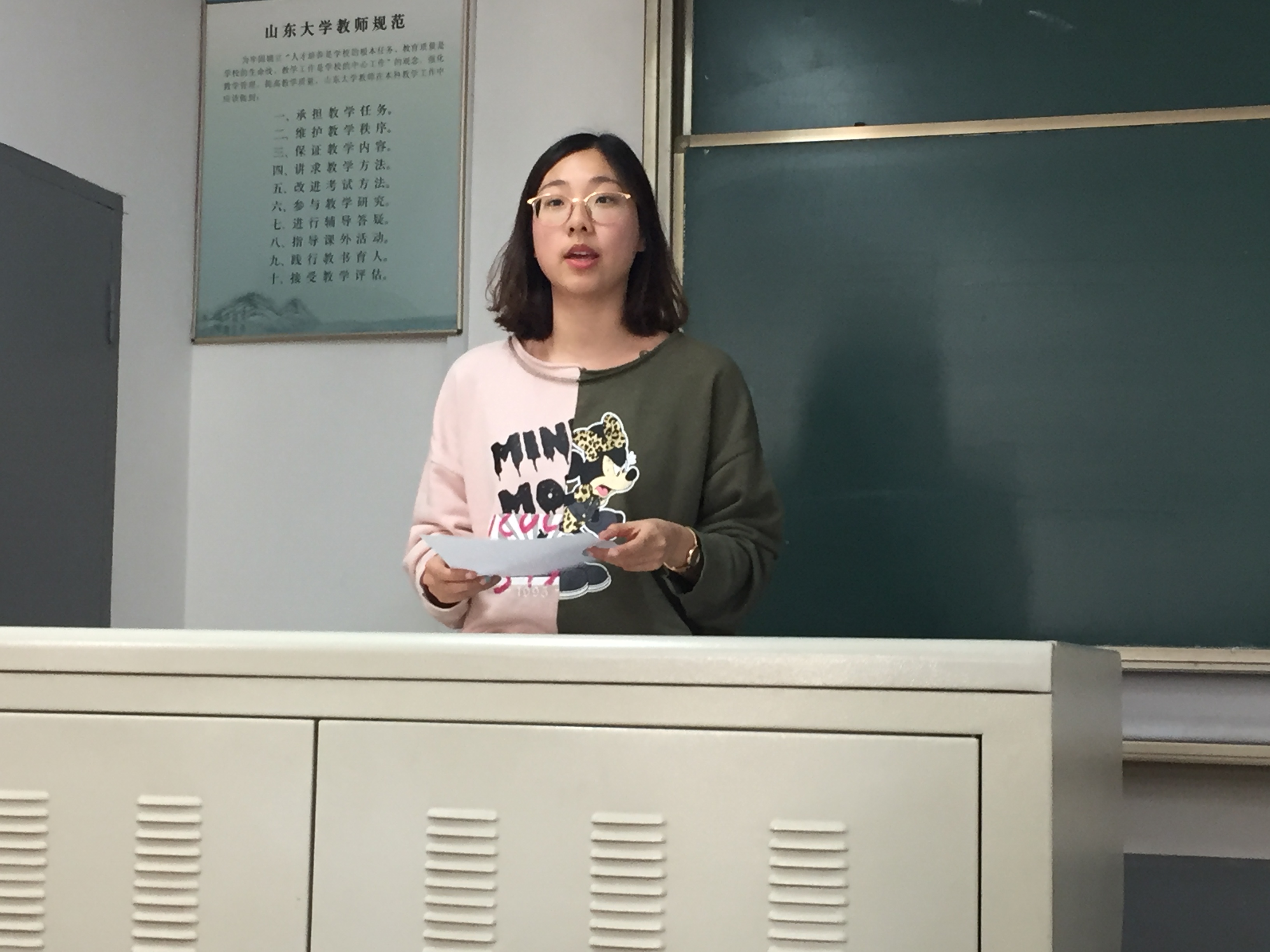 第一个上去答辩的是班级学习委员王子睿同学,他详细介绍自己寒假在生物实验室工作实践的经历,并就数学系,尤其是统计专业的同学在生物领域的就业方向及前景做了详细讲解。接下来的吴颖同学讲述了她做的调研经历和心得体会。同学们的社会实践经历各有各的特色,有的在会计师事务所负责账目工作,有的在证券公司做助理,有的在银行担任工作,更有甚者,在土耳其这个遥远的异国做出了自己的实践和是思考。同学们的社会实践总体而言,和本专业就业有着很大的联系,并在社会实践中收获了知识和经验。
