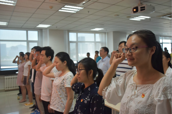 6月28日上午,英国上市公司365在知新楼召开2018年度新党员入党宣誓大会,12名预备党员在老党员的见证下面对党旗庄严宣誓。公司党委书记曲明军,教师党员以及部分入党积极分子出席会议。会议由公司党委副书记路云生主持。
