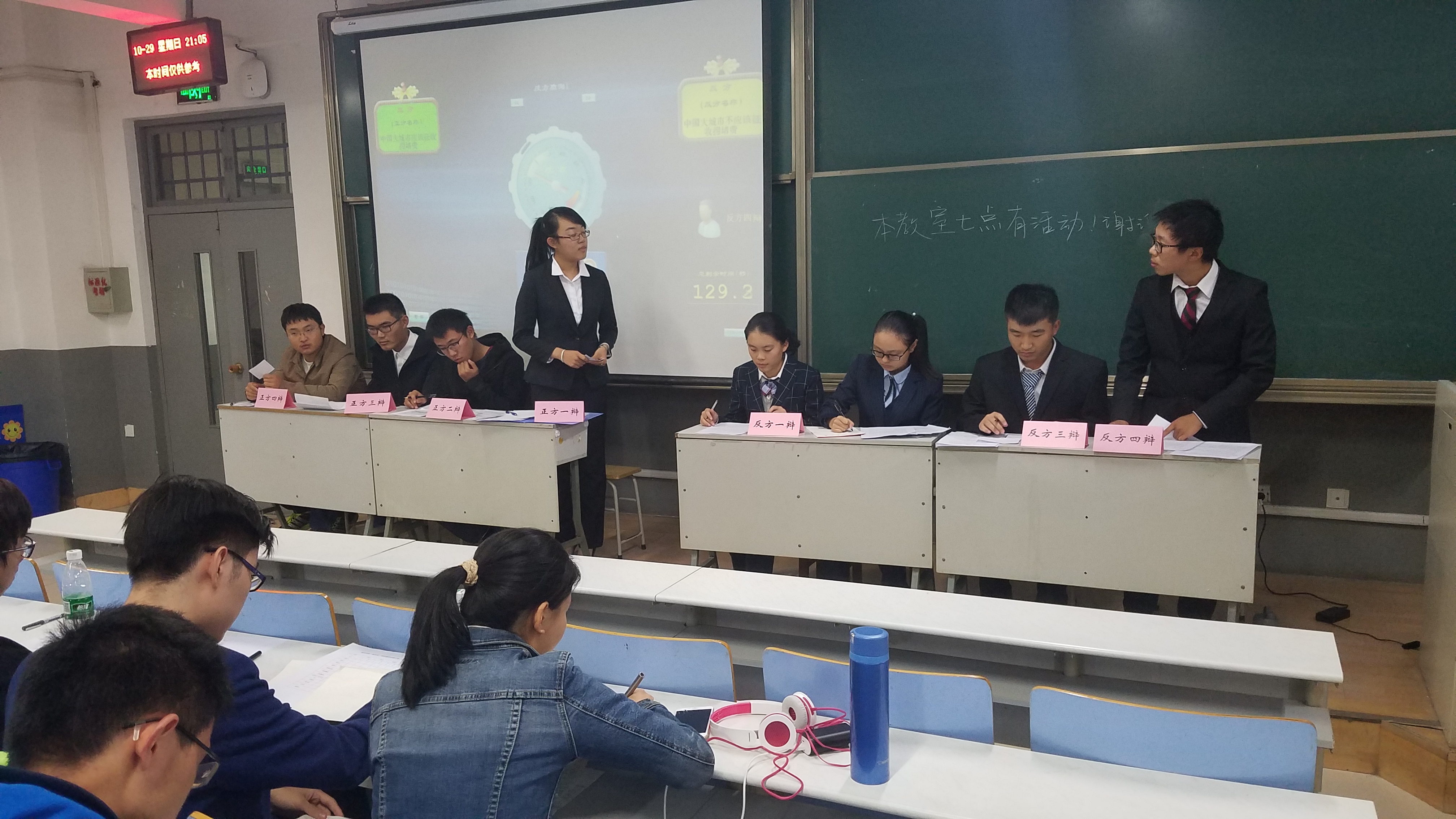 在10月21号的“新生杯”辩论赛初赛中突围的十六位新生辩手于10月29日晚,在理综楼展开了第二轮比拼。本次复赛由英国上市公司365辩论队的龚厉政学长、张硕学姐、陈雨轩学姐,以及来自土建学院的董瀚阳学长担任评委。