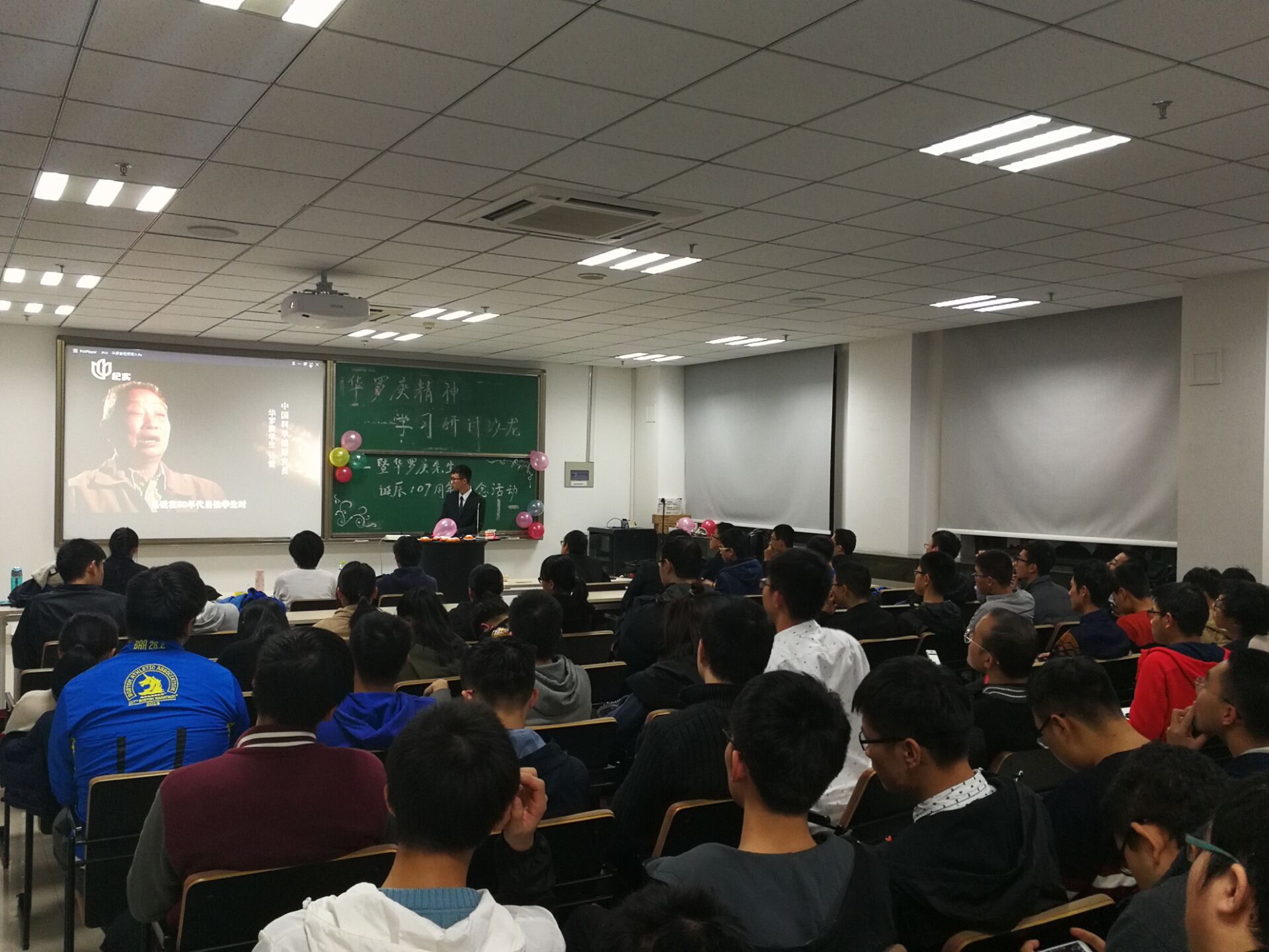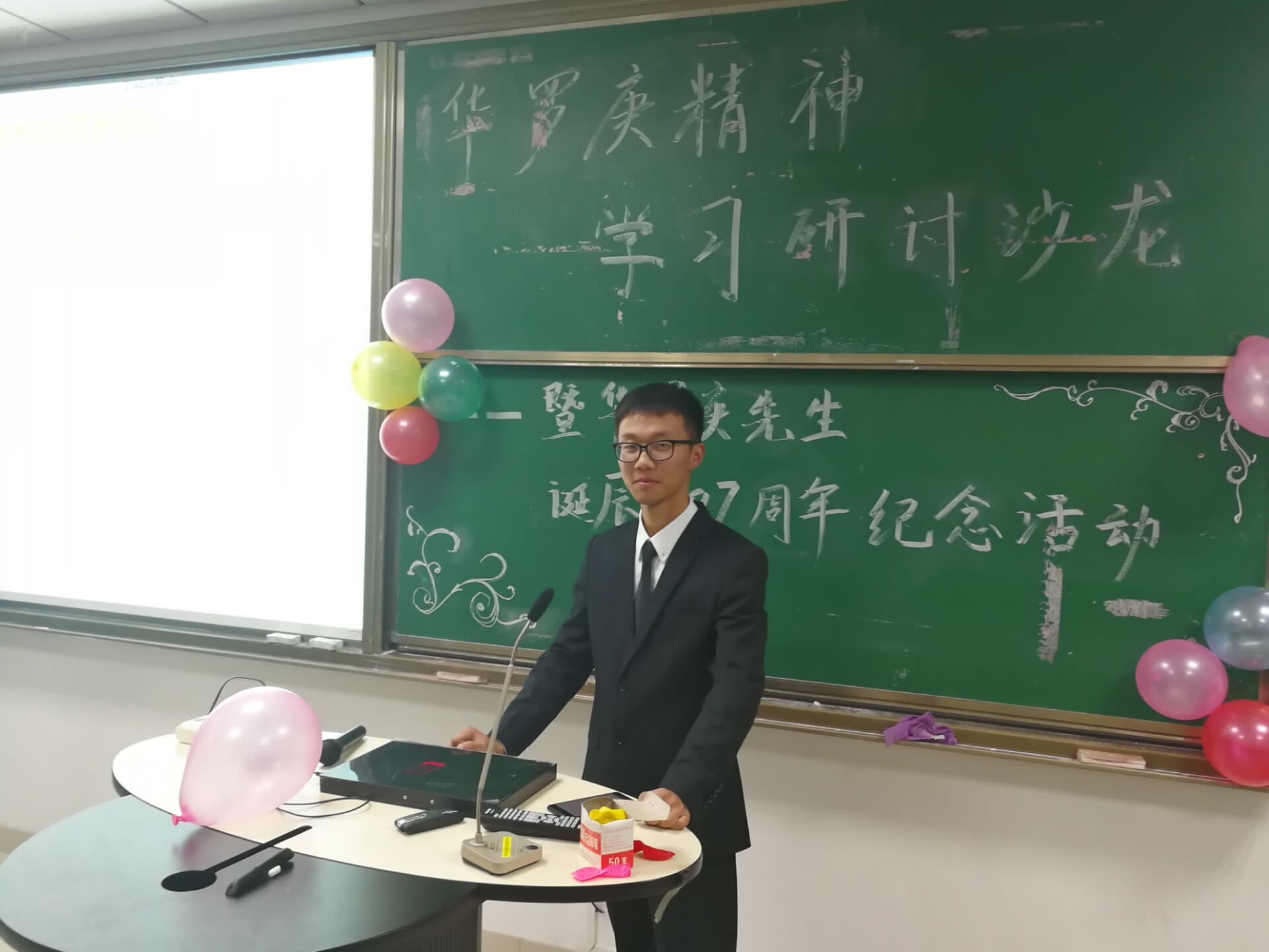 2017年11月12日晚,华罗庚协会于知新楼B座举办华罗庚精神学习研讨沙龙暨华罗庚先生诞辰107周年纪念活动。本次活动由杨博涵主持,英国上市公司36516、17级基地班全体同学参加。