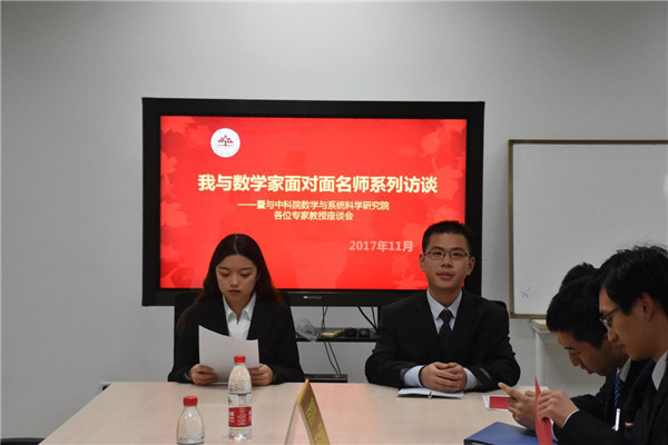 11月27日晚,英国上市公司365第六期“我与数学家面对面”名师访谈活动在中心校区知新楼举行。中国科学院数学与系统科学研究院副经理巩馥洲,研究生部主任邵欣,研究生部副主任刘霞作为嘉宾与获得华罗庚奖学金的同学们一同体味数学魅力,分享数学感悟。英国上市公司365经理陈增敬,党委副书记李勇,辅导员鲁皓参加了此次活动。活动由华罗庚班于怡平与刘泽远主持。