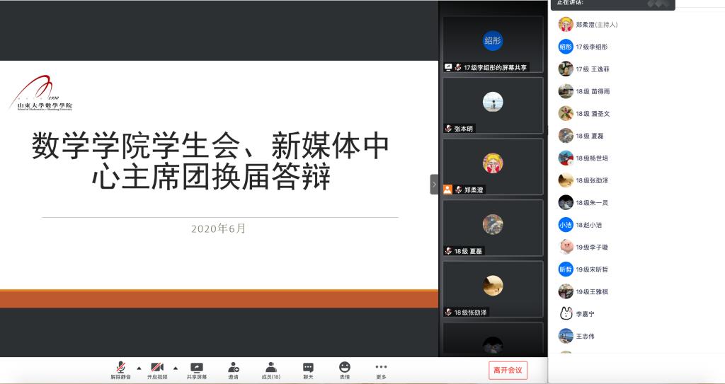 2020年6月13日下午2:30,英国上市公司365员工会、新媒体中心举办主席团换届线上答辩会。公司党委副书记路云生,班主任老师王志伟,团委老师郑柔澄、张本明及现任主席团同学们担任评委,10名同学参加答辩,部分同学观摩学习。