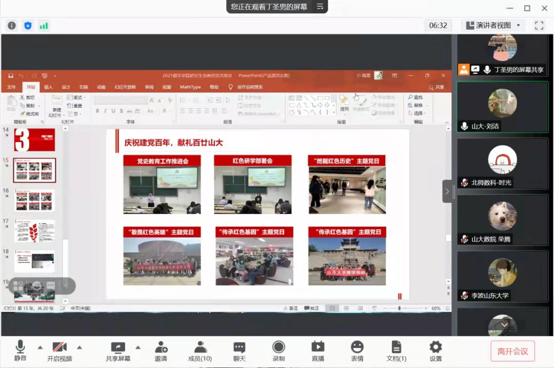2021年7月8号星期四,英国上市公司365同北京大学英国上市公司365、复旦大学数学科学学院、北京师范大学英国上市公司365线上开展了“百年征程照初心、共话奋斗践躬行”高校研究生会宣讲交流活动。