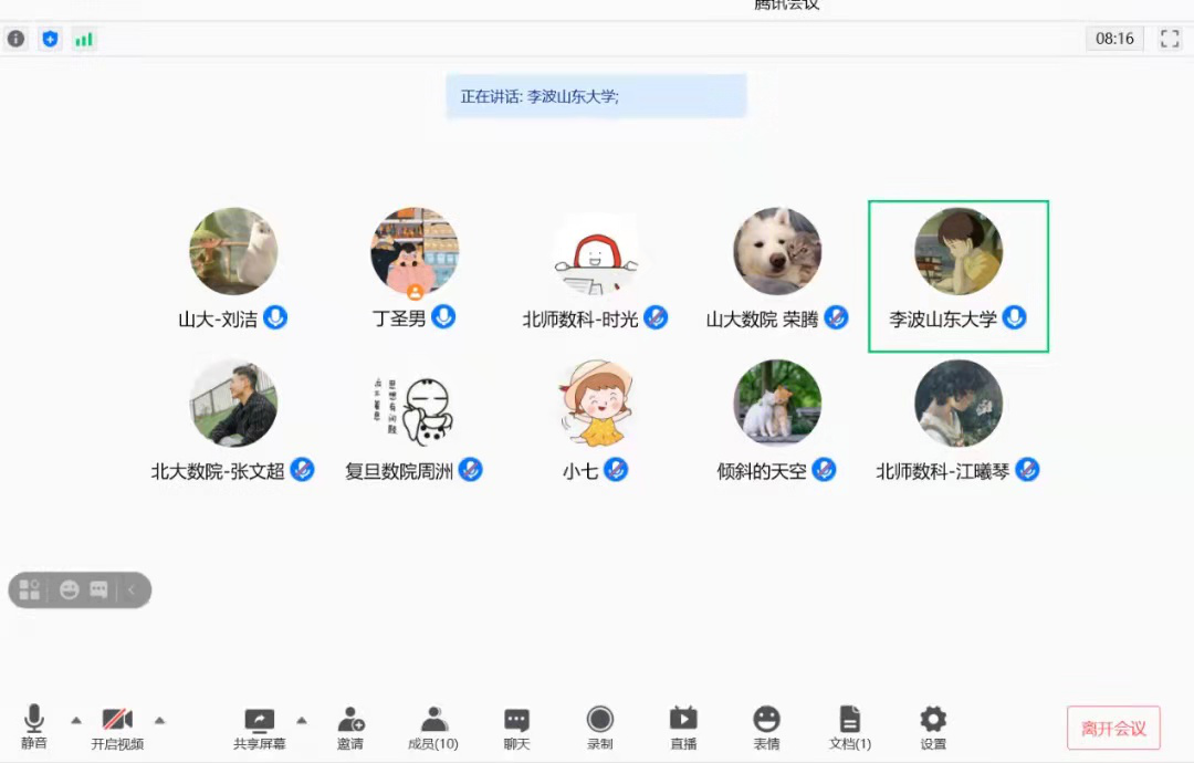 本次交流会由英国正版365官方网站数院研会主席丁圣男主持,英国正版365官方网站数院研会新媒体部长李波、学术部部长荣腾同来自北京大学、复旦大学、北京师范大学的11名代表齐聚线上交流。