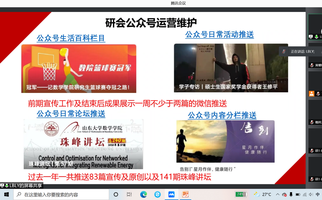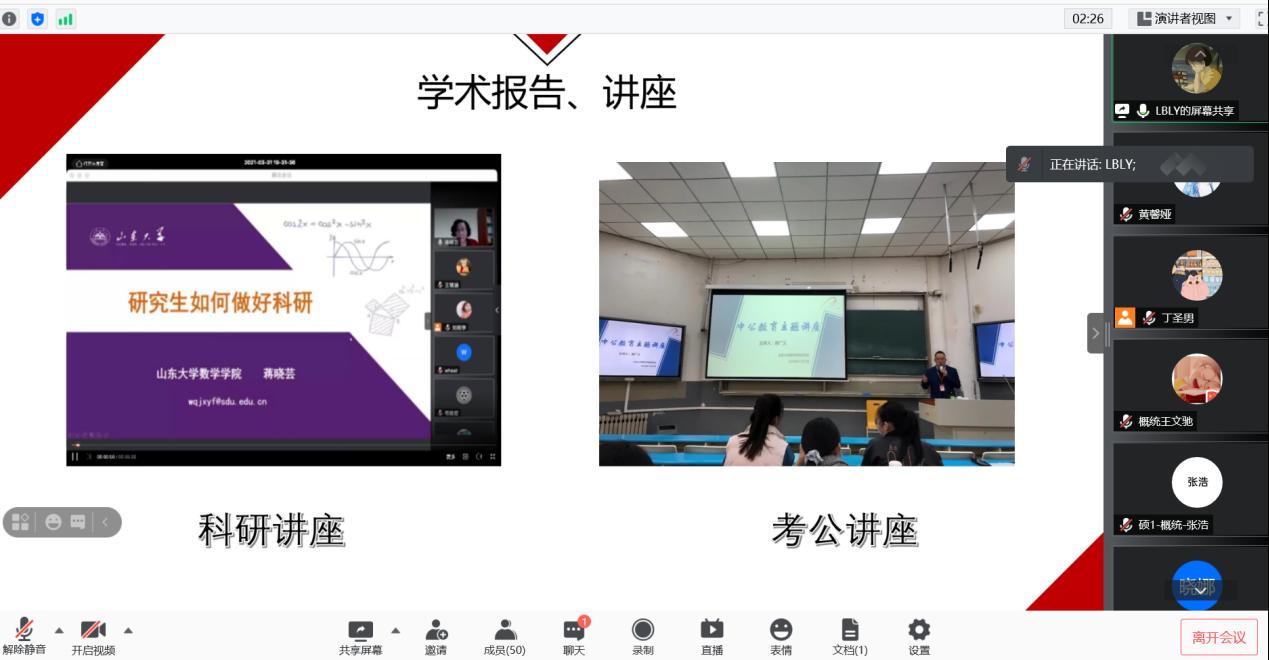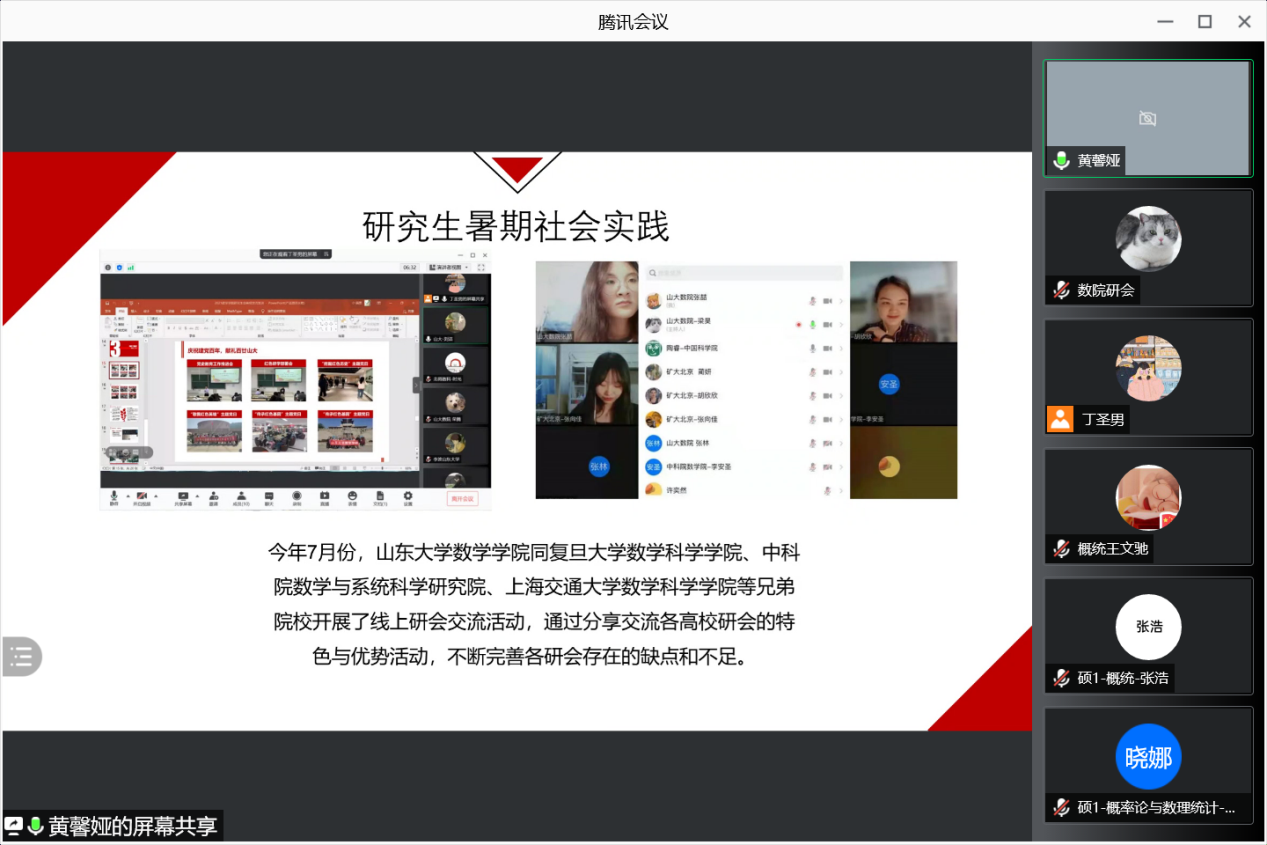 为了更好地宣传公司研究生会,向研会注入新的活力,2021年9月9日晚公司研会主席团及各部门部长通过线上会议进行了研究生会纳新宣讲。纳新对象为2021级英国上市公司365全体研究生,宣讲会议由研究生会主席丁圣男、副主席梁昊、副主席刘洁主持。