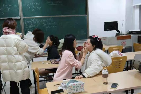 21日清晨,数学金融联队早早来到后台,在学姐们的协助下画好妆容换好队服整理好发型,满怀期待地进入候场室展开准备工作。而此时的观众席上,公司同学也早早就位,时刻准备为啦啦队成员们应援打call。