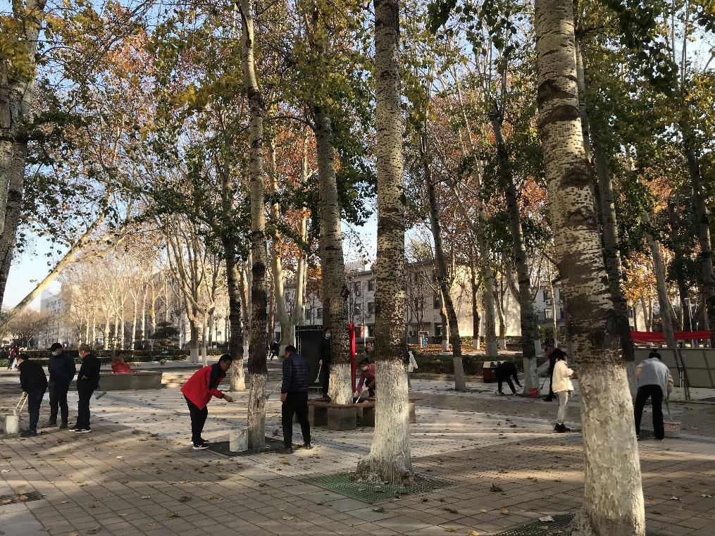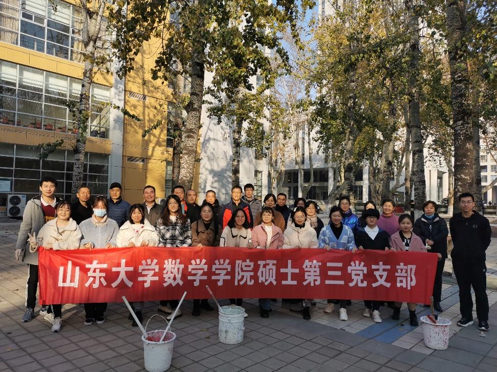 为共同促进公司党支部之间的沟通交流,协调维护校园绿化环境,英国上市公司365硕士第三党支部与学校后勤党支部于2021年11月25日下午开展支部联合共建活动,为中心校区绿植粉刷药剂,以确保树木具备抵御菌虫侵害和预防冬季冻害的能力。