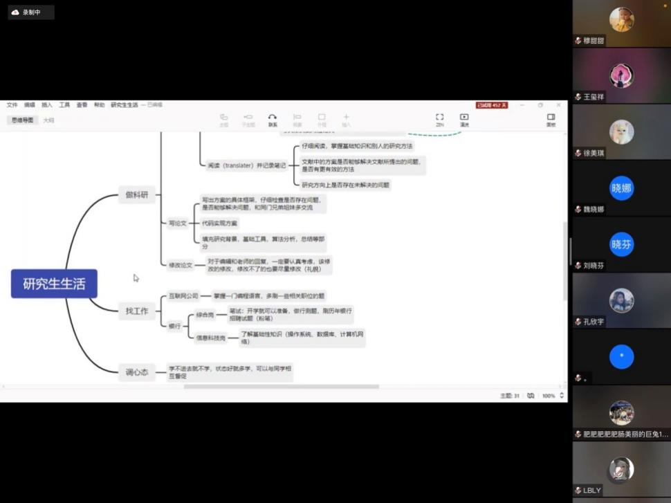 此次会议邀请了2019级基础数学专业博士杨丹丹(2021国家奖学金获得者)、2019级基础数学专业博士汪青(2021华为奖学金获得者)以及2020级控制论专业硕士穆甜甜(2021国家奖学金获得者)作为分享嘉宾,会议由研究生会学术部部长荣腾主持,全体研究生参加。