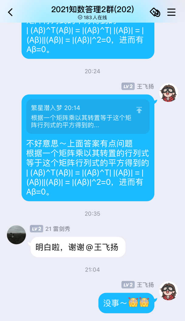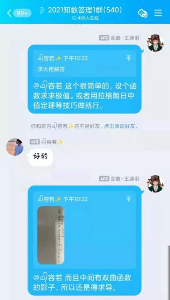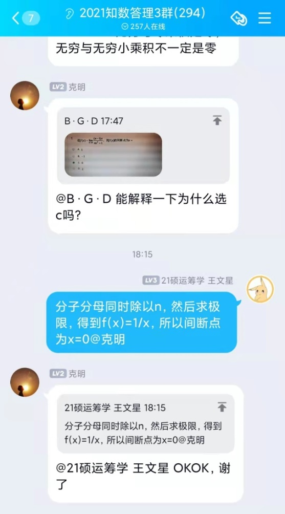 自活动开展以来,共收到来自全校一千四百余名同学加入答疑群的申请,英国上市公司365“阿尔法”答疑志愿团队,平均每周解答疑问近两百条。志愿者们耐心地为同学们讲解定理证明,分享解题技巧,梳理答题思路,引导同学们由“被动接受”转向“主动思考”,在加深自己对数学基础知识理解的同时,体会到以自己所学服务、帮助他人的成就感与幸福感。活动开展期间,同学们积极讨论,勤于思考,不仅及时解决了在数学学习上遇到的问题,更提升了数学学习能力,激发了学习数学的积极性。