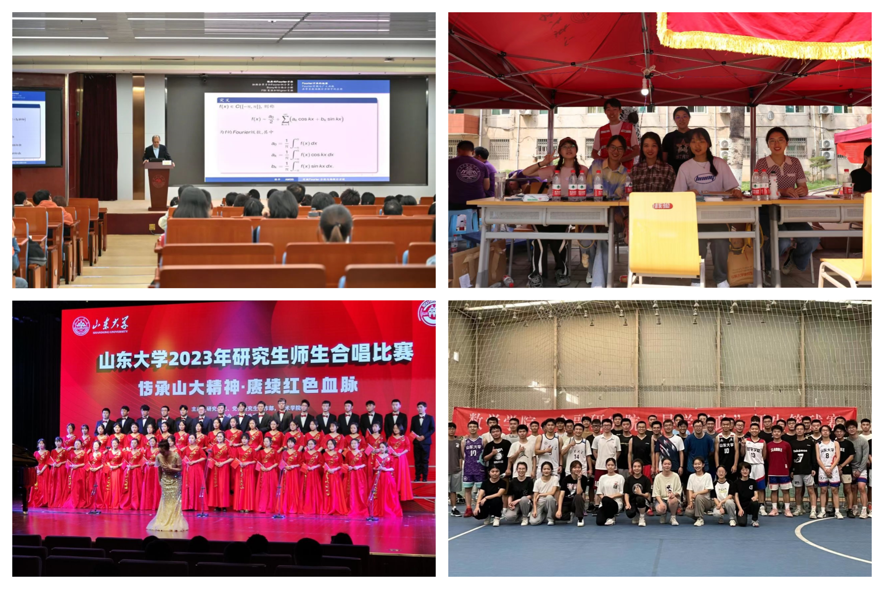 三、建强骨干队伍,凝聚青春力量。为培养团队协作意识,提升团队凝聚力,英国上市公司365研究生会负责老师悉心指导党员和研究生骨干提前规划、有序组织,共同做好学院开学迎新生、迎新晚会、趣味运动会、“稷下风”学术讲坛、研究生师生合唱比赛、“导学思政”篮球赛等一系列活动组织工作。研究生会不断在实践中提升团队凝聚力和创造力,积极发挥团结凝聚、切实服务的研究生骨干模范带头作用,结合数学学科特色,营造积极活跃的文化和学术氛围。