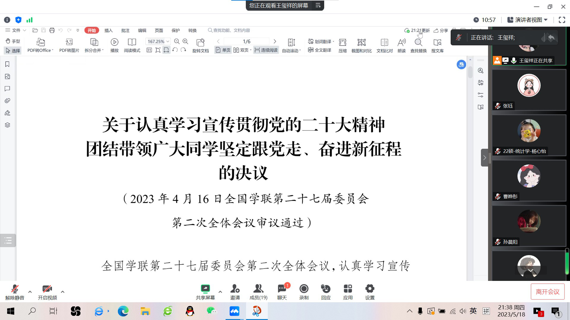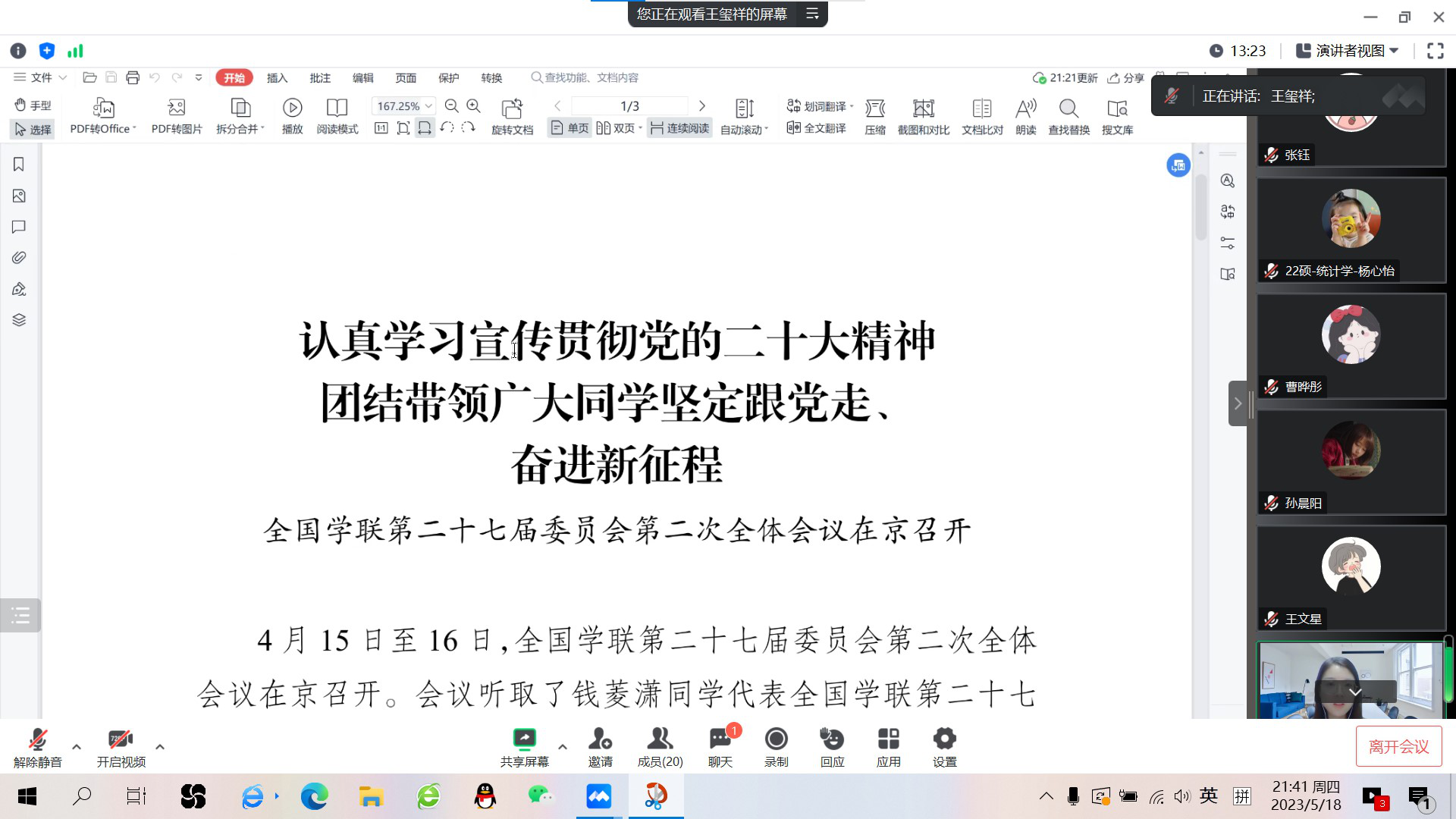 4月15日至16日,全国学联第二十七届委员会第二次全体会议在京召开,就学联员工会组织团结带领广大同学学习党的二十大精神、坚定跟党走、奋进新征程作出研究部署。英国上市公司365研究生会全体成员高度关注会议,认真学习会议文件,领悟会议精神,并对文件内容展开了深入交流与研讨。