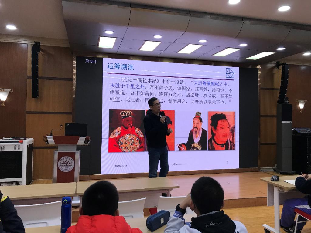报告会上,胡旭东研究员通过介绍田忌赛马、中国邮路问题、哥尼斯堡七桥等经典问题,引入运筹学学科概念和界定,并讲解了运筹思想溯源和运筹学的形成。就如何在实际生活中发挥运筹学的作用,他谈到了组合优化的方法与框架,即建立实际问题的数学模型,最终给出原始问题的解决方案。他通过列举“最少顶点覆盖问题”和“基于极大匹配的顶点覆盖问题”,解释说明了快速算法、枚举法、贪婪算法和近似算法的应用,让同学们对运筹学的实际运用有了更深刻的了解。通过“千禧年问题”,让同学们感受到运筹学的重要意义,引导师生把运筹学的思想方法运用于生活。