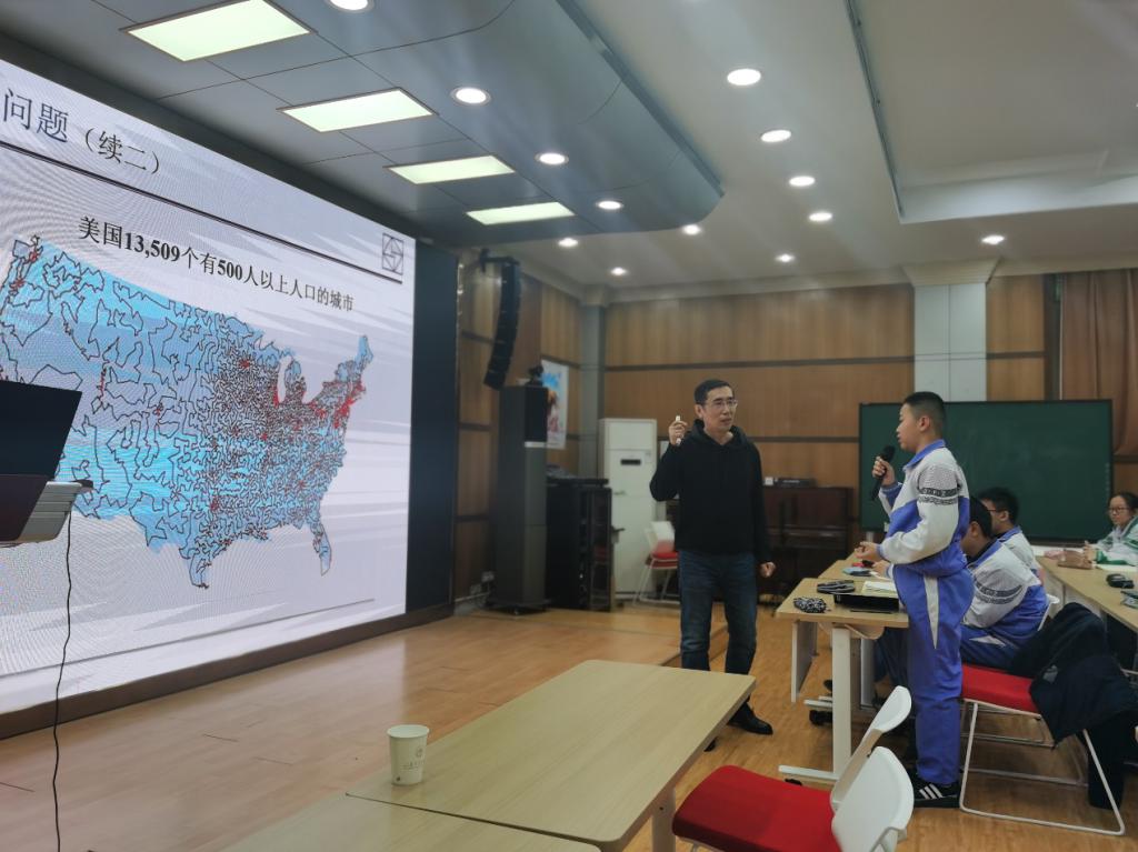 报告会场中,胡旭东研究员不时与现场同学互动,并赠送科学书籍作为奖励。他深入浅出地通过介绍实际生活中的几个数学趣题,向同学们讲解了运筹学的基本思想和研究方法,报告赢得现场师生的热烈掌声。
