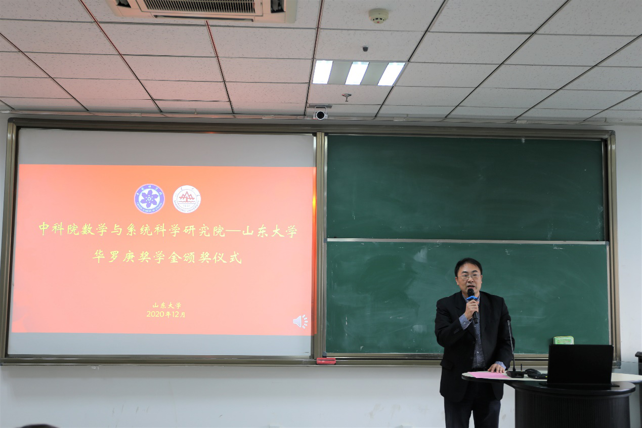 巩馥洲首先对获得2020年华罗庚奖学金的各位同学表示了祝贺,随后他介绍了华罗庚班的历史、运行模式和培养成果,鼓励同学们锲而不舍、志存高远,在学习专业知识的同时也要重视陶冶情操,全面发展。
