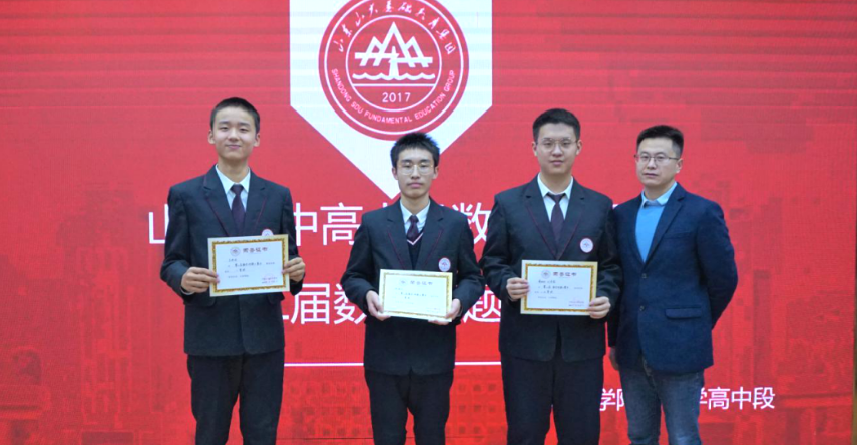 而后是颁奖环节,本次讲题大赛一等奖得者为刘昊霖﹑王梓涵﹑张砺丹,二等奖获得者为王琦恺﹑宋子煜﹑常正非,三等奖获得者为董力宁﹑宋玥溪﹑董邦石﹑朱睿正。王光辉﹑庄增臣﹑夏利杰分别为大赛获奖者以及数学建模论文大赛的一二等奖得主颁奖并合影留念。