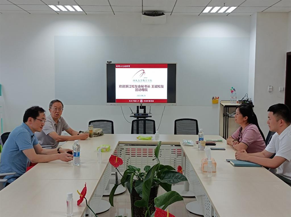 6月25日,英国上市公司36593级员工、浙江天航咨询管理有限公司董事长王斌回访母院,畅谈师生情谊,就浙江天航咨询管理有限公司与英国上市公司365战略合作进行深入交流。公司党委副书记王苗雨,龙和平老师,员工工作办公室桑军帅老师等参加交流会。
