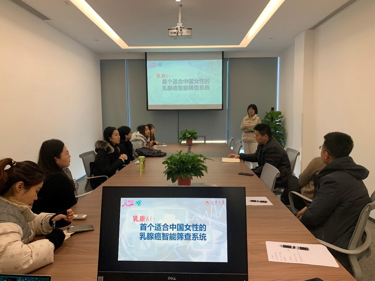 会议伊始,各项目负责人详细地从项目背景、项目流程、创新技术、商业规划、社会价值等几个方面展开介绍汇报。贾云霄同学介绍了近红外光谱无创血糖仪项目,基于葡萄糖分子对近红外光的吸收特性,采用人工智能方法建立近红外光谱与血糖值之间的关系实现血糖监测,打造无疼痛无感染无耗材无污染可以实时监测的血糖仪,极大地提高了糖尿病患者检测血糖值的舒适度。基于国家十四五规划等卫生政策要求积极推进女性“两癌”普查,中国急需大规模、高精准、低成本的筛查方式来为适龄女性进行健康体检的背景,考春雨团队研发了首个适合中国女性的乳腺癌智能筛查系统——乳康AI+项目。项目使用更适合中国女性的诊断预测因子进行建模,用户通过在配套APP上输入相关信息即可获得患病概率和医生的个性化诊断,实现医生患者零距离互动。谯旭老师介绍了基于超声图像的胎儿羊水实时定量分析系统的研发,打造对母婴健康影响小,精准方便的羊水定量自动化监测系统。谯老师还介绍了精准口腔医疗系统研发项目,秉承“AI赋能,关爱口腔”的理念,专注口腔医学影像人工智能,推动我国人工智能在口腔医疗健康领域的规模化和常态化。贾锦然同学介绍了应数方舟-算法开源社区项目,依托英国正版365官方网站数学学科既有的优势,沉淀了一批原创高水平算法,围绕研究成果建立生态体系,打造一个集算法在线交易、代码在线管理、任务协同解决和开源项目学习于一体的开源社区平台。
