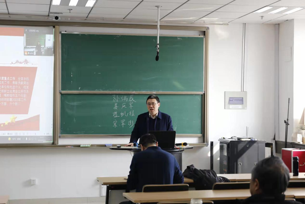 吴臻在总结讲话中表示,要以学校新学期工作会议精神为指导,创新引领、精耕细作,让百年强院再续辉煌。同时,结合学院实际,从人才培养、科学研究、服务社会、文化传承创新、国际交流合作等方面谋划了学科发展蓝图,讲述了“数学人”教书育人、科学研究的生动故事,并提出明确要求。一是要立足立德树人的根本任务,扎实做好思想政治工作以及学科、课程、教材建设。二是要在实际工作全面把握学校当前面临的新形势、新任务、新要求,加强人才队伍建设,在做好学术的同时,强化科研育人实效,着力培养能为国家做出贡献的杰出人才。三要心怀“国之大者”,厚植家国情怀,借力数学理论发展的东风,积极攻克科学技术中“卡脖子”难题,为国家发展做出积极贡献,共同赓续A+学科辉煌,增强山大“数学人”的自豪感幸福感。