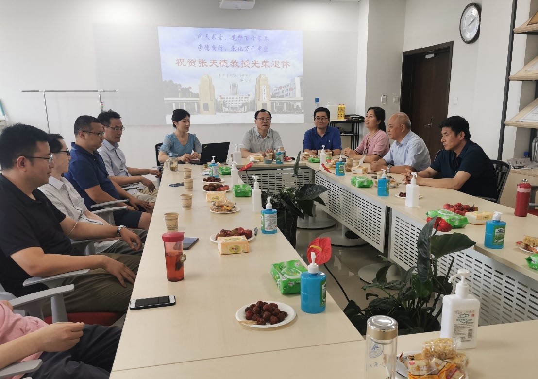 2022年6月24日,科学计算与软件研究所的老师们、特邀嘉宾公司党委王苗雨副书记齐聚一堂,在知新楼B808举行了茶话座谈会,祝贺张天德教授光荣退休。荣休仪式由科学计算与软件党支部书记刘蕴贤教授主持。