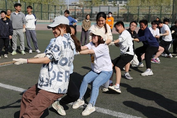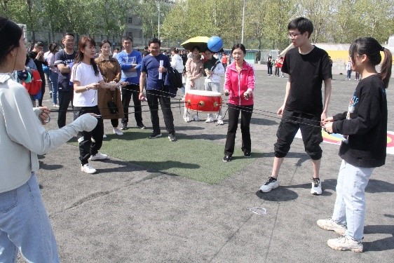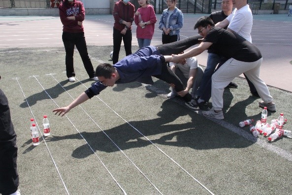 上午是趣味运动会部分,包括师生联动、员工项目、老师项目三类,共有三人四足、勺子运球、拔河比赛、群龙取水等十四项趣味活动。联动项目三人四足将操场气氛带动起来,现场笑声不断;拔河比赛将趣味运动会进一步推上了高潮,一声令下,参赛者们喊着口号用尽浑身力气争取胜利,加油呐喊声震耳欲聋;4*50m做题接力跑吸引了在场师生的围观,老师们斗志昂扬,彰显出数院教师卓越的精神风貌。