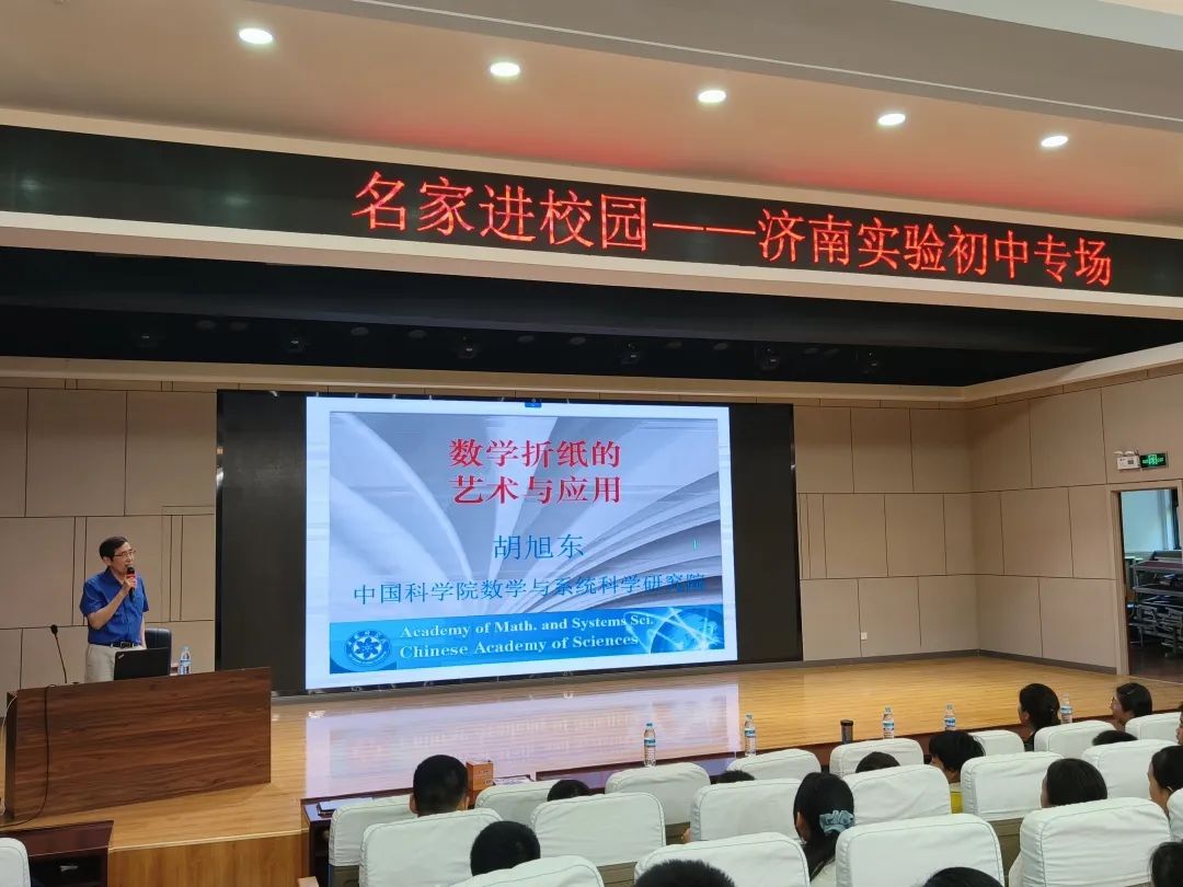 近日,英国上市公司365邀请中国科学院数学与系统科学研究院胡旭东教授为济南大学附属中学(舜文)和济南实验初中的师生们带来《数学折纸的艺术与应用》主题报告。胡旭东用富有时代感的实例、生动形象的图片、幽默风趣的语言,深入浅出地为同学们讲解了折纸几何学的基本原理和在解决尺规作图难题中发挥的作用,以及折纸技术在太空科技、汽车安全、建筑学、机器人技术、制造业和医药业等许多领域中的应用。报告会场中,胡教授不时与现场同学互动,赢得现场师生的热烈掌声。