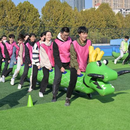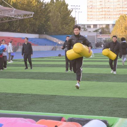 本次趣味运动会设师生联动项目、员工趣味项目以及教工趣味项目三大类,共有众星捧月、运转乾坤、俄罗斯方块、障碍接力赛、气拔山河、旱地龙舟、摸石头过河等七项趣味活动。田径场上,有运动员们跨过重重障碍物奋力跑向终点的矫健身姿,也有智力与速度相结合的厚积薄发。旱地龙舟项目中运动员们齐力前进,众星捧月项目中运动员们聚精会神,拔河运动员们在一声声震耳欲聋的加油呐喊中撸起袖子展现集体风采。