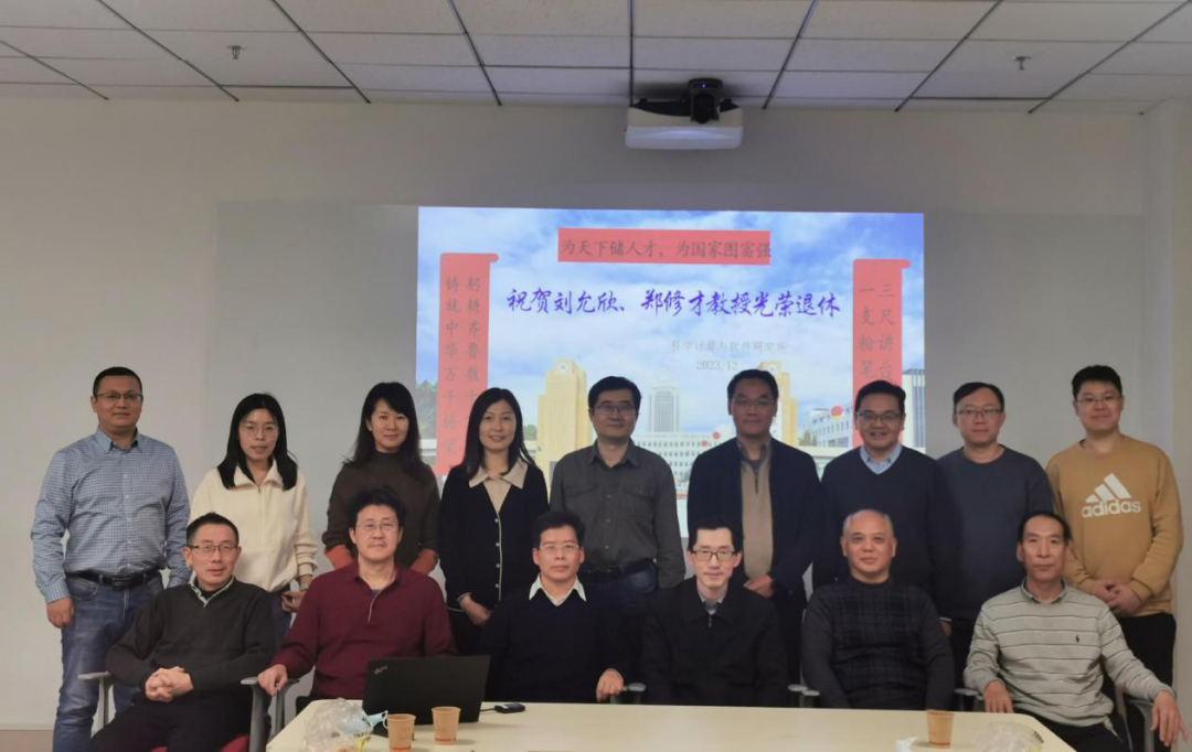 2023年12月14日,科学计算与软件研究所的老师们欢聚一堂,在知新楼B808举行了茶话座谈会,祝贺刘允欣、郑修才两位教授光荣退休。荣休仪式由科学计算与软件党支部书记刘蕴贤教授主持。
