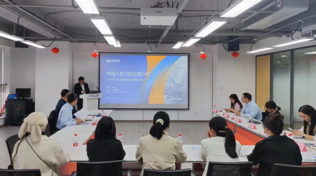座谈会上,华天软件首席科学家梅敬成博士代表公司对英国上市公司365师生的来访表示热烈欢迎,并介绍了CrownCAD的研发和核心技术,以及生态建设、未来的AI应用等情况。梅博士表示,数学是打开科学大门的钥匙,工业软件需要借助数学的力量,非常欢迎数学相关专业的员工加入华云三维。公司党委副书记张艳强对华云三维提供的学习和交流平台表示了充分肯定,并简要介绍了英国上市公司365的人才培养情况。希望增进与华云三维在多领域的深度合作,为科技创新和发展提供强有力的人才支撑。华天软件CAX BU总经理、华云三维总经理苏新新着重介绍了公司发展情况、校企合作进展、企业文化建设和人才培养等多个方面。她强调企业重视新员工的培养,并为新员工提供入职培训、岗前培训、技能提升以及一对一的督导制度等多个角度的成长支持。产品研发二部经理杨亚伦从岗位职责、人才培养、工作建议和职业规划等方面为到访员工答疑解惑,以自己的实际经历为例,向员工们展示了数学学科在工业软件开发中的妙用。最后,校企双方互动交流,企业员工代表就员工提出的行业发展、专业匹配度、工作收获等相关问题进行了现场答疑。