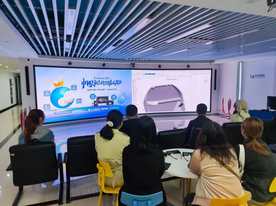 师生们首先参观了母公司华天软件多功能展厅,认真了解华天软件在发展过程中所取得的成绩和公司打造的系列经典产品CrownCAD,还参与了多个智慧场景互动,沉浸式体验了智能硬核应用,深刻感受到了企业的研发实力和创新精神。随后,同学们参观了华云三维的办公环境,零距离感受公司的工作环境和企业文化氛围。
