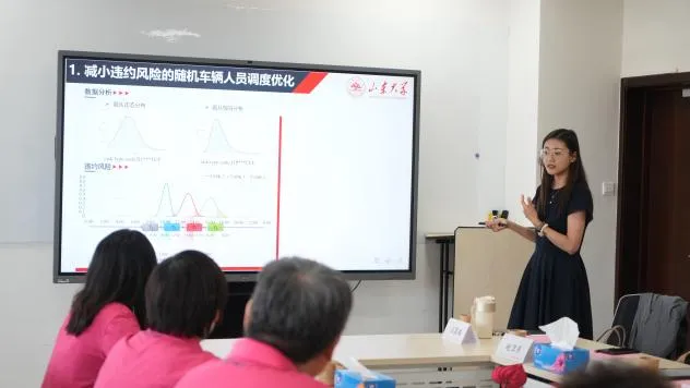 王苗雨代表学院对李文杰一行的到来表示欢迎,向漱玉平民22周年庆表示祝贺,希望双方以此次交流为契机增进交流,共谋发展。王光辉介绍了学院历史沿革、团队建设、人才培养等情况,分享了学院近期科研成果和拔尖人才培养成效。张艳强介绍了学院员工总体情况和就业升学去向,分享了“学在数学,快乐成长”德智体美劳全面发展的培养体系。何勇介绍了大数据统计建模在医疗行业的应用,展望了大数据在医药数字化转型领域的巨大前景。汲晨璐阐述了智能优化、物流与供应链管理方向的相关研究成果。