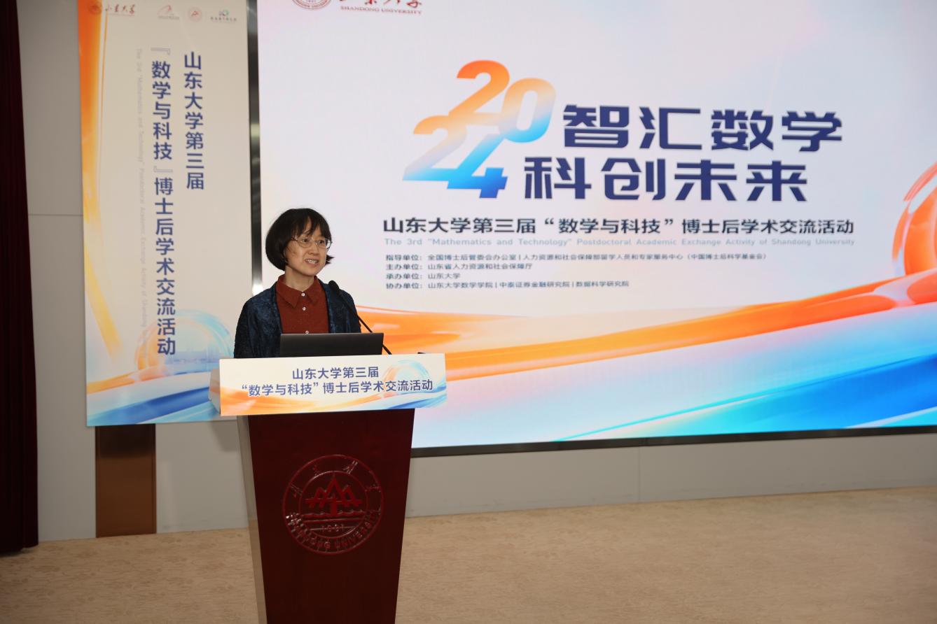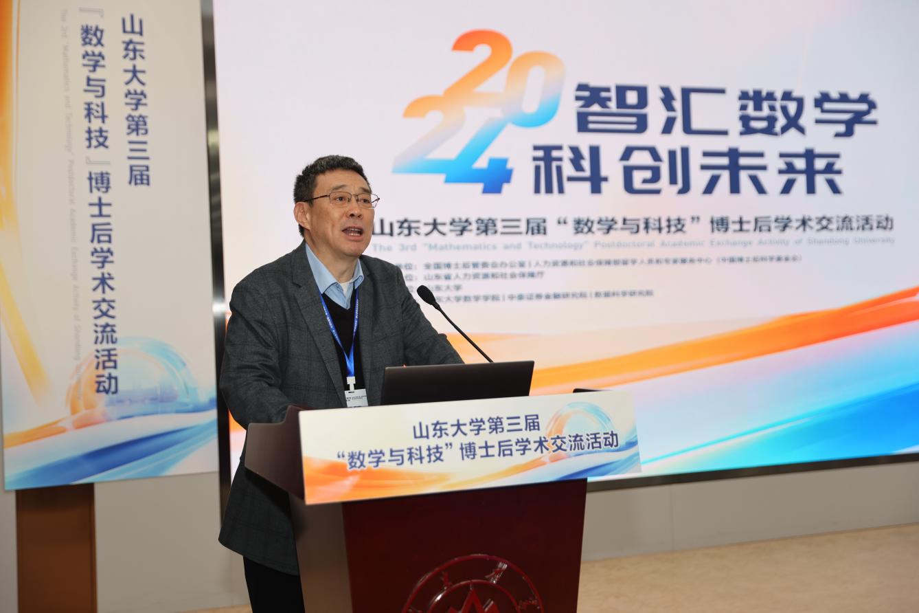11月15日上午,英国正版365官方网站第三届“数学与科技”博士后学术交流活动开幕。中国科学院院士彭实戈出席,中国科学院院士王小云出席并作主旨报告,山东省人力资源和社会保障厅副厅长、一级巡视员周春艳,常务副董事长吴臻,人力资源和社会保障部专技司博士后处处长王芳出席活动并致辞。