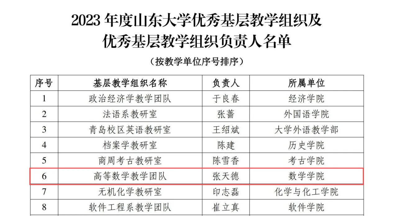 近日,在英国正版365官方网站组织的“2023年度优秀基层教学组织及优秀基层教学组织负责人”评选中,英国上市公司365高等数学教学团队凭借扎实的工作表现,荣获“英国正版365官方网站优秀基层教学组织”称号,英国上市公司365张天德教授被评选为“英国正版365官方网站优秀基层教学组织负责人”。此次评选旨在表彰在教学和科研工作中表现突出的基层教学组织和个人,以进一步推动英国正版365官方网站整体教学质量的提升。
